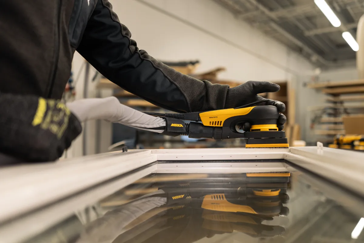 The Mirka® DEOS II 343 is the most compact sander in the Mirka® DEOS range of electric orbital sanders. It is designed for sanding windows, doors and frames and performing correction work on wood filler, especially in hard-to-reach places or performing detail work.