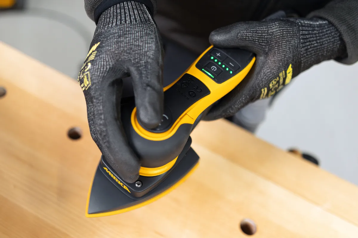 The operator can easily adjust the sanding speed: in addition to the easy-to-operate lever, the Mirka DEOS II also features clearly visible LED indicators for the speed selector and a separate on/off switch.
