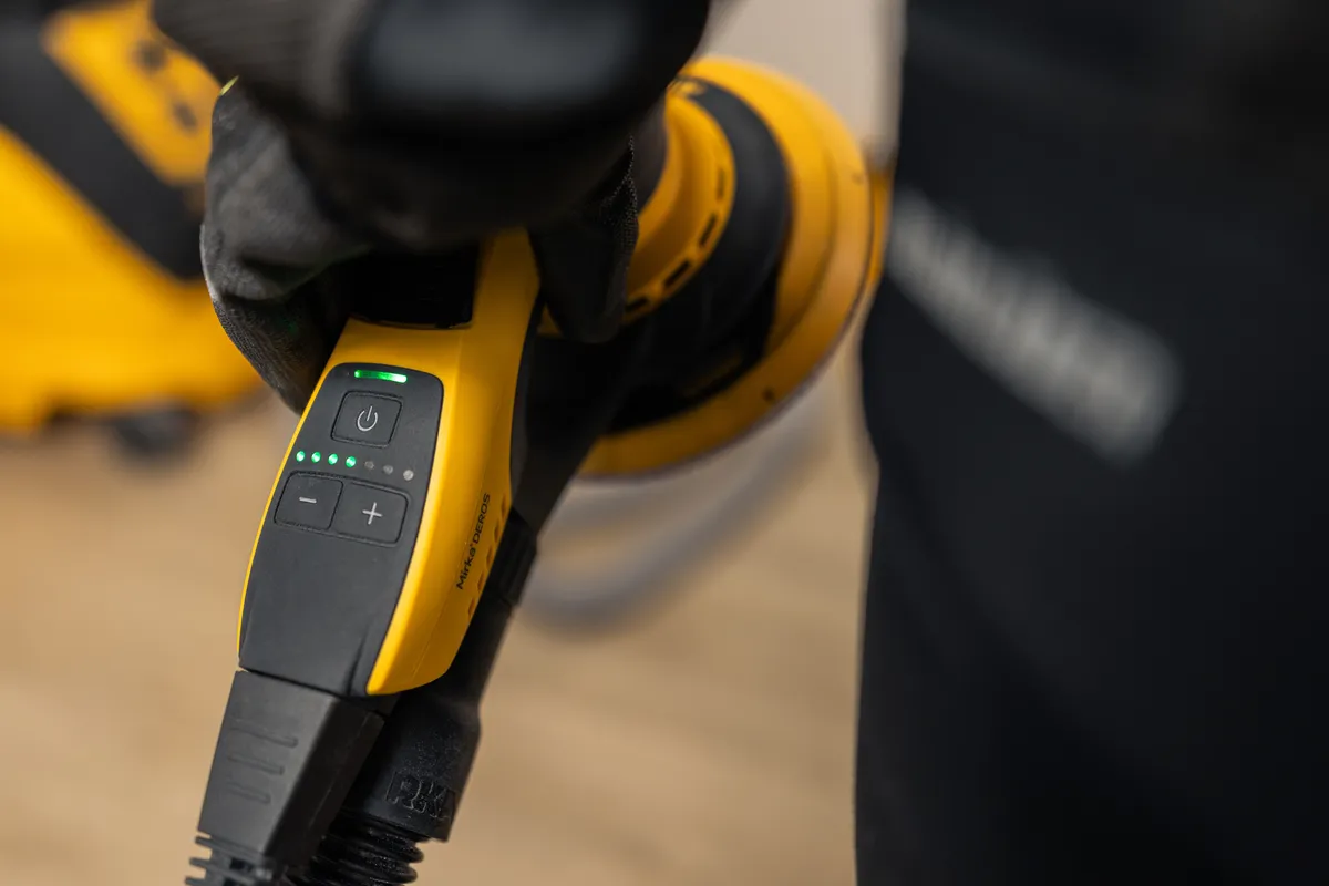 As part of the Mirka dust-free sanding solution, the Mirka DEROS enables efficient dust-free sanding and a Bluetooth connectivity allows seamless integration with the myMirka app for vibration monitoring.
