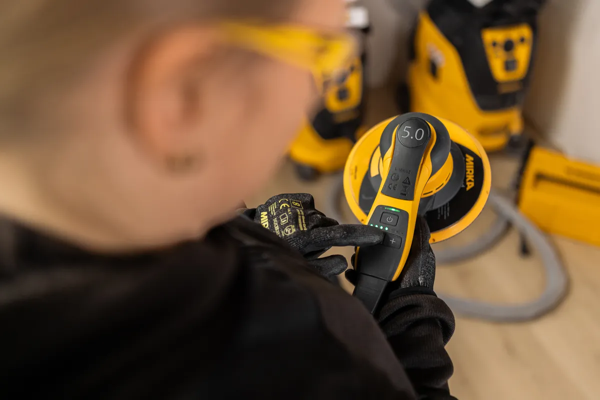 As part of the Mirka dust-free sanding solution, the Mirka DEROS enables efficient dust-free sanding and a Bluetooth connectivity allows seamless integration with the myMirka app for vibration monitoring.
